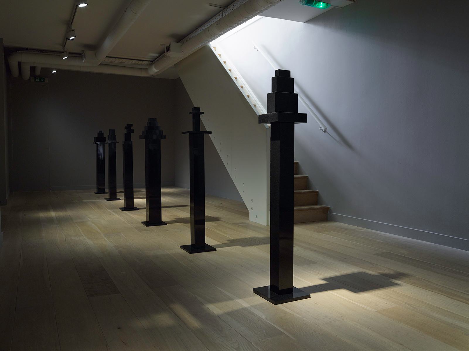 Šerpytytė also extends the thematic of Pedestal by premiering a new series of sculptural works. Using readymade polished granite plinths the sculptures reference not only the display of public sculpture but gravestones. And in an uncanny twist they echo the forms of Minimalist sculptures, one of the dominant Modernist forms prevalent in the West during the Cold War.